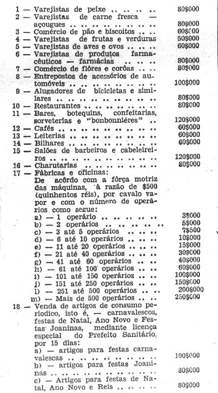 da noite. 9.º - Alugadores de bicicletas e similares: - todos o