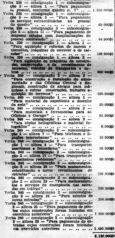consignadas no orçamento vigente ao Departamento de Estradas de
