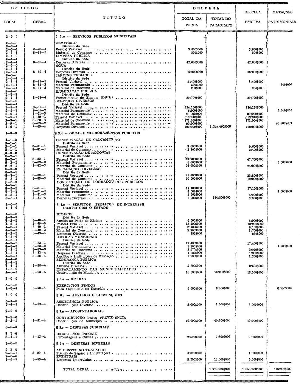 Artigo 2.º - A Despesa Geral da Prefeitura de Guarujá, para o exercício de 1942, e fixada em 1.770:000$000 (um mil, setecentos e setenta e contos de réis), e será realizada obedecendo a seguinte classificação: