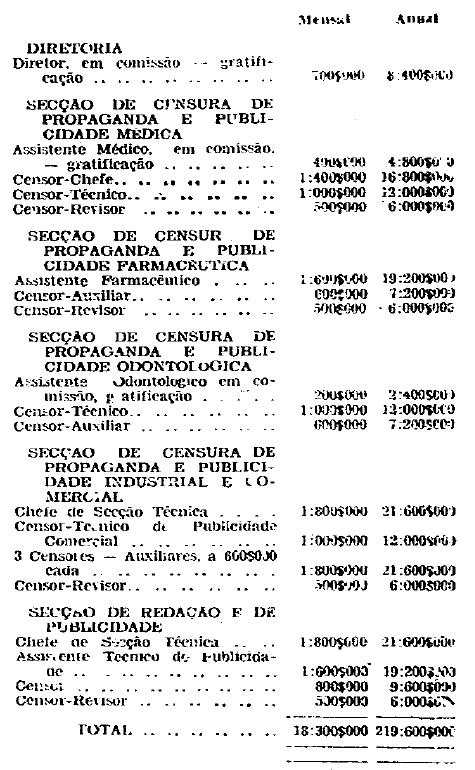 Artigo 6.º - O Diretor do Serviço de Censura e de Publicidade Sanitária terá as seguintes atribuições: