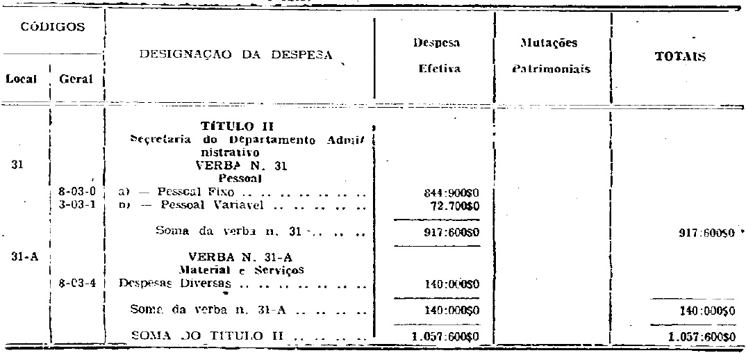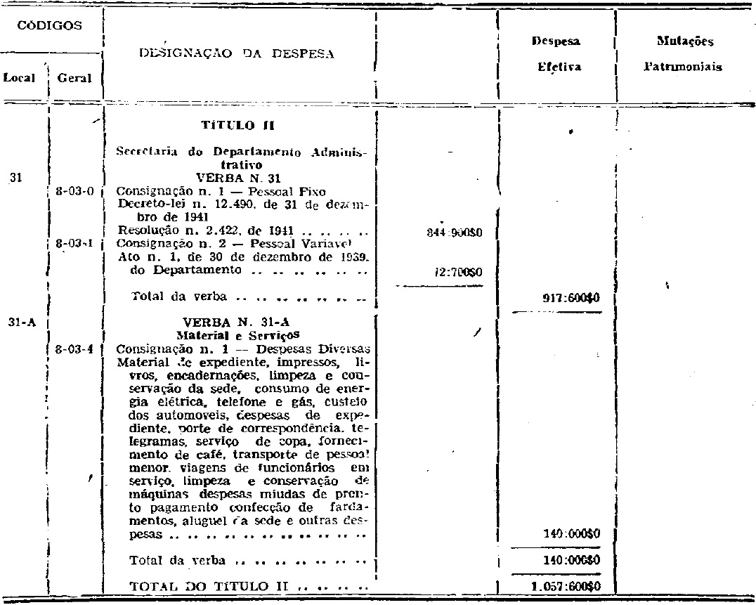 Artigo 2.º - Passa a ter o seguinte histórico e designação o Titulo II do § 7.o das tabelas explicativas da despesa, baixadas com o decreto n. 12.414, de 19 de dezembro de 1941: