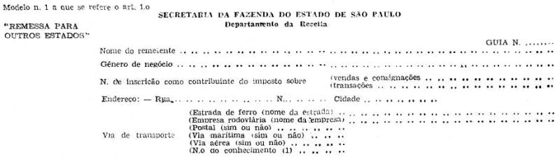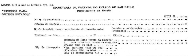 Estado, o remetente entregará uma guia, de acordo com os modelos