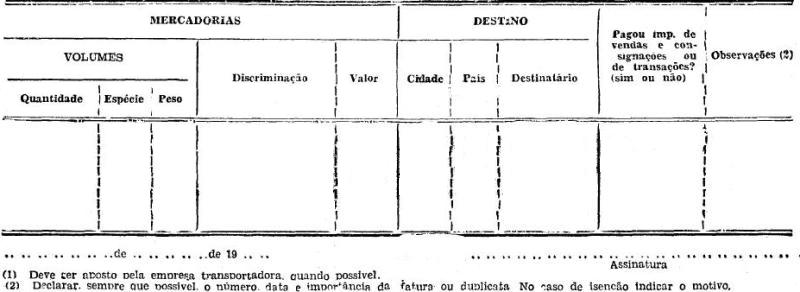 NO MODELO N. 2 do referido decreto, no título, onde se lê: "REMESSA PARA OUTROS ESTADOS" leia-se: "REMESSA PARA O ESTRANGEIRO".