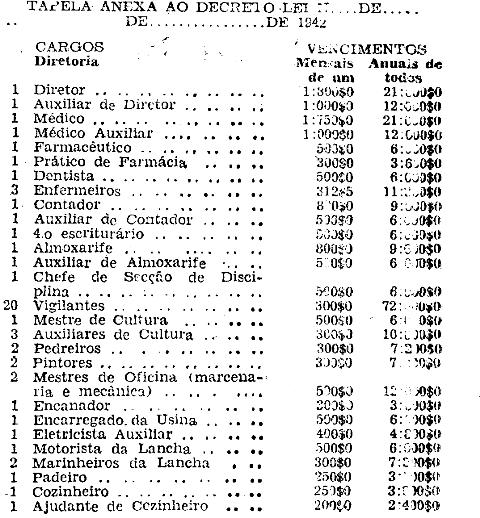 Artigo 6.º - O Instituto terá o seguinte pessoal com os vencimentos e distribuição constantes da tabela anexa: