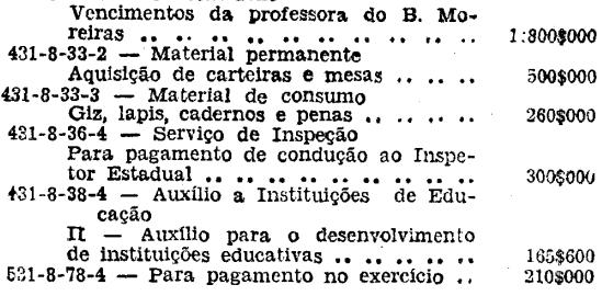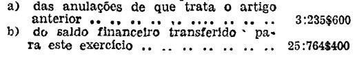 Artigo 3.° - Ficam anuladas nas importâncias abaixo, as seguintes verbas do orçamento da Estância: