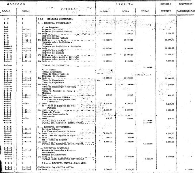 Artigo 1.º - A Receita Geral da na Prefeitura