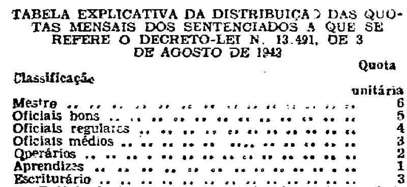 Artigo 1.º - Os sentenciados que trabalham nas oficinas da