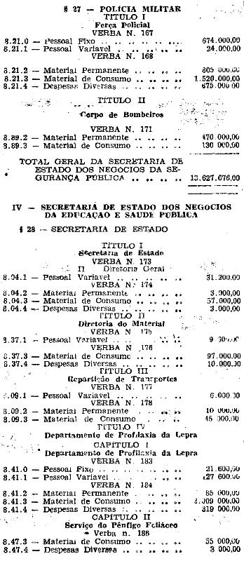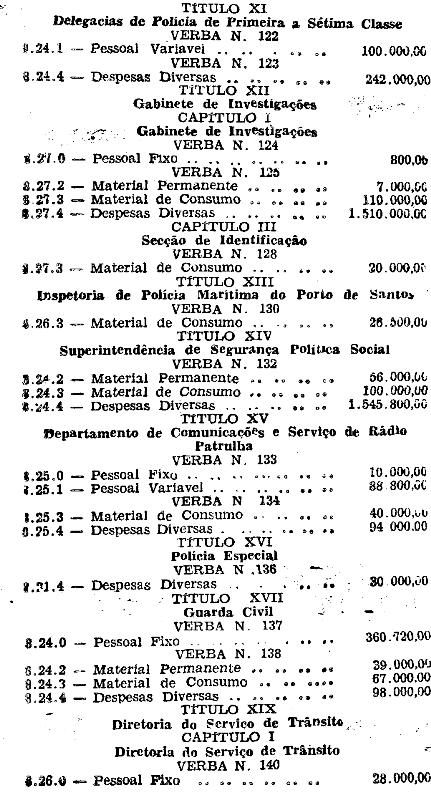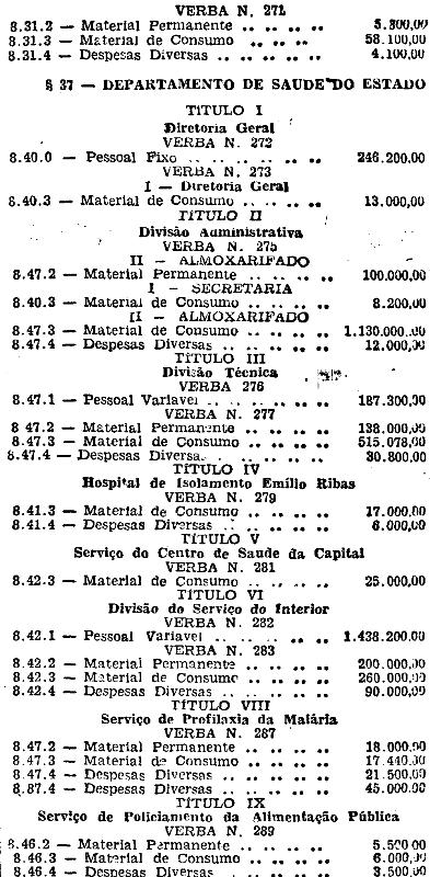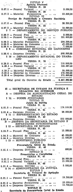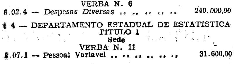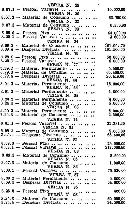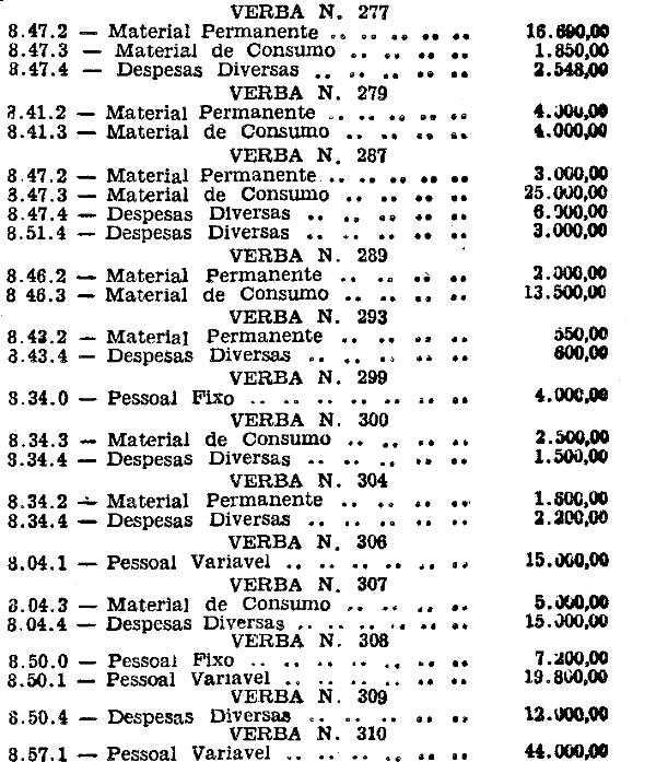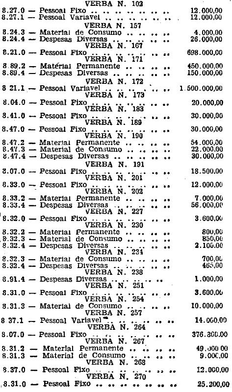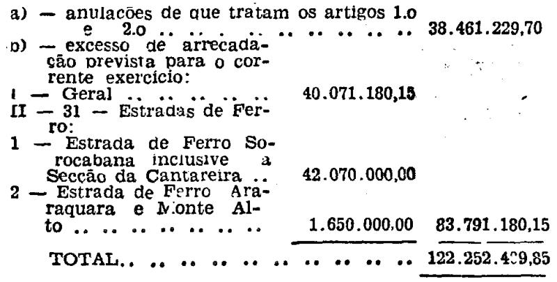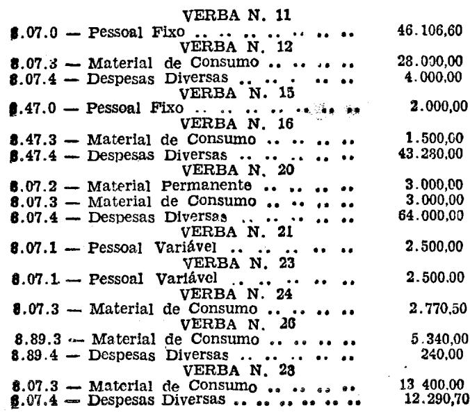 Artigo 1.º - Ficam anuladas, nas importâncias abaixo, as seguintes verbas do orçamento vigente do Estado: