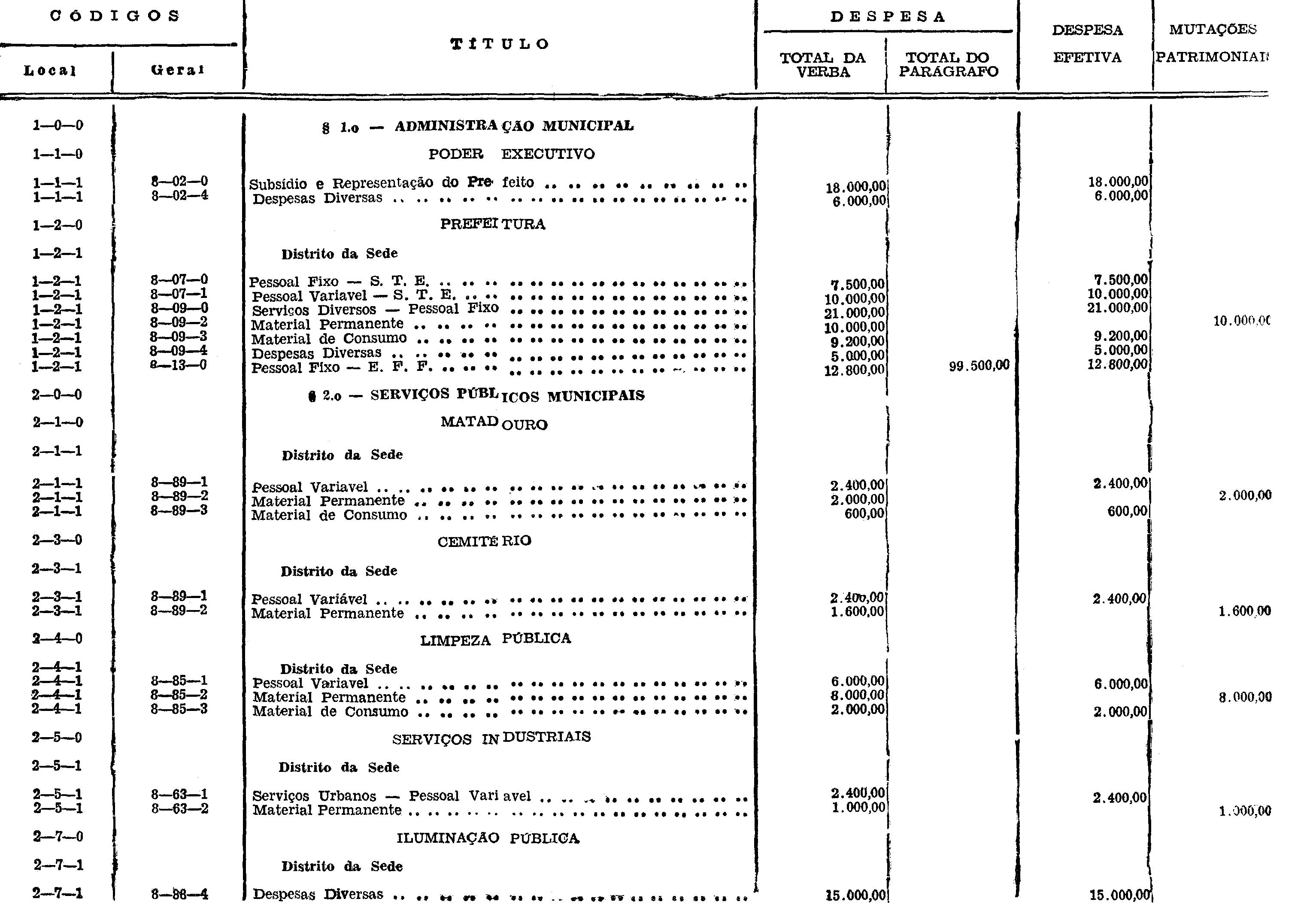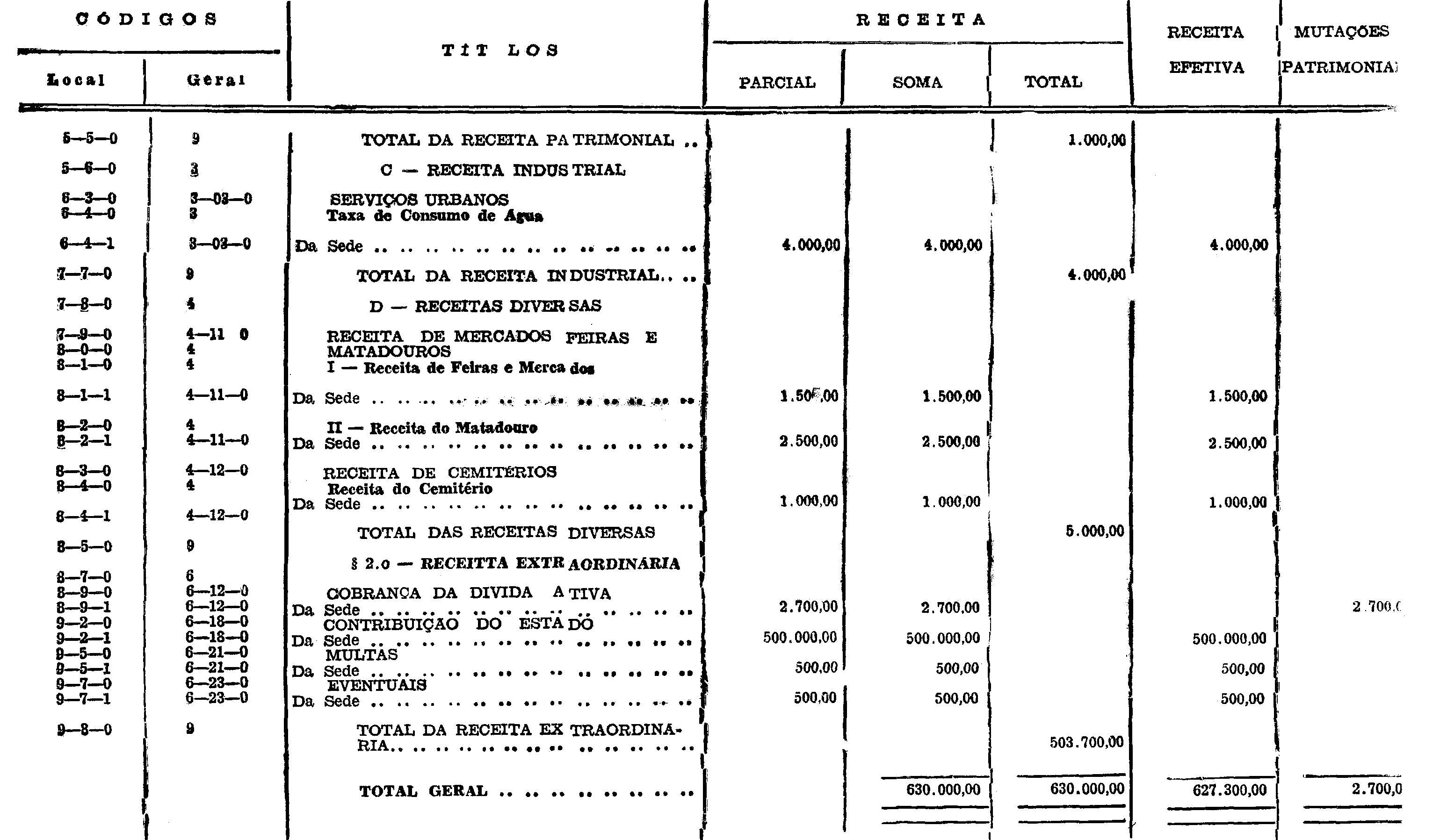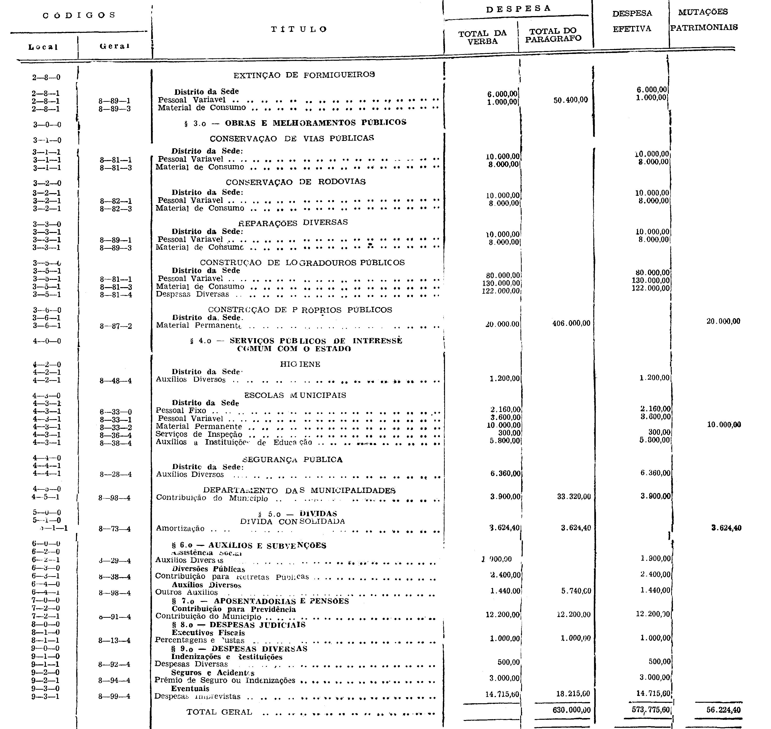 Artigo 2.º - A Despesa Geral do Município de LINDÓIA, para o exercicio de 1944, é fixada em Cr$ 630.000,00 (seiscentos e trinta mil cruzeiros), e será realizada obedecendo à seguinte classificação: