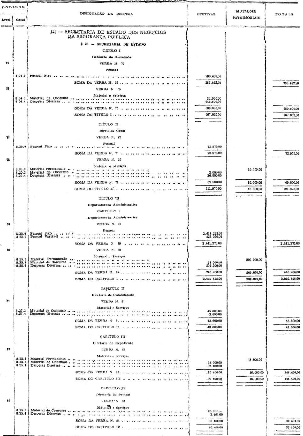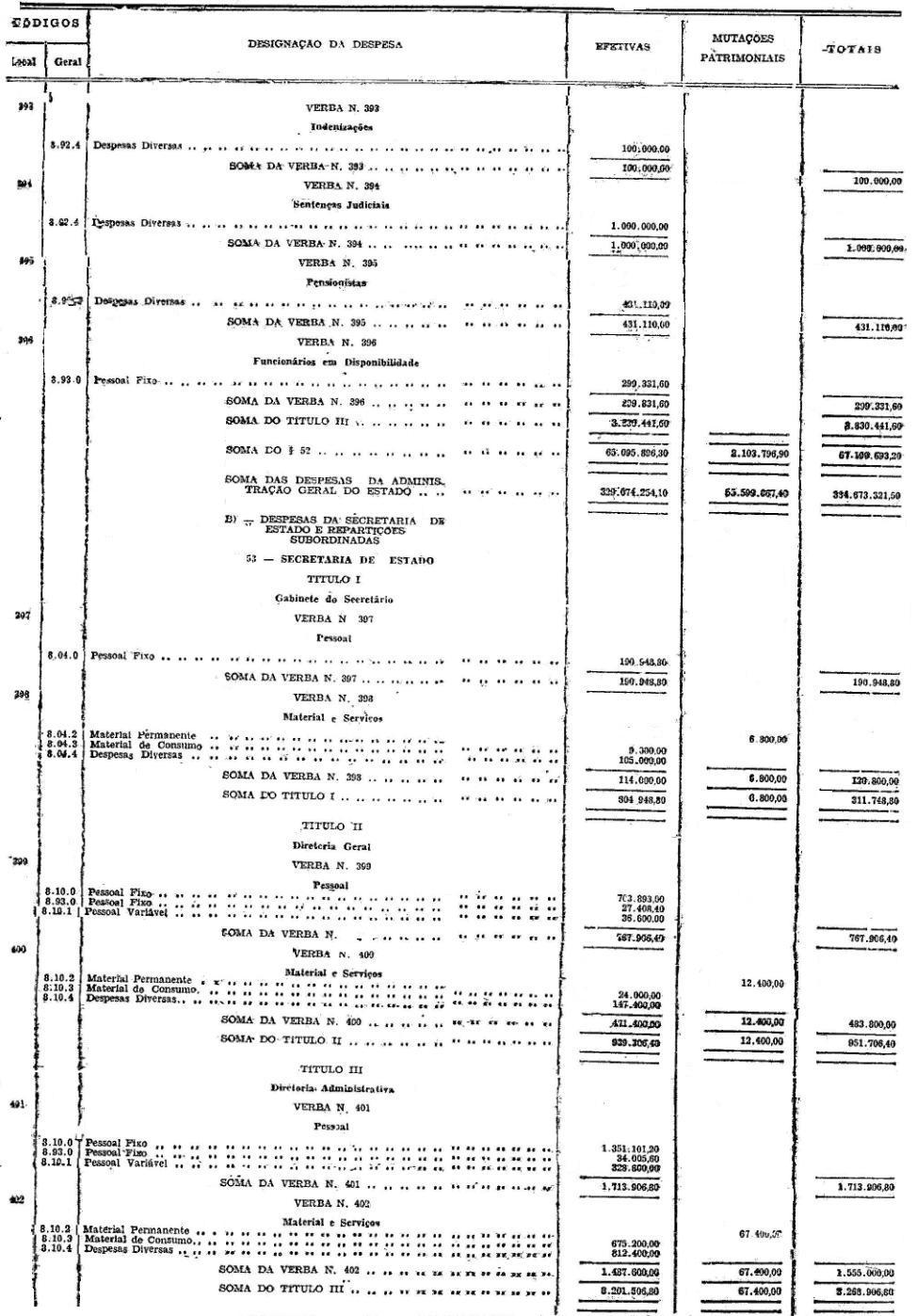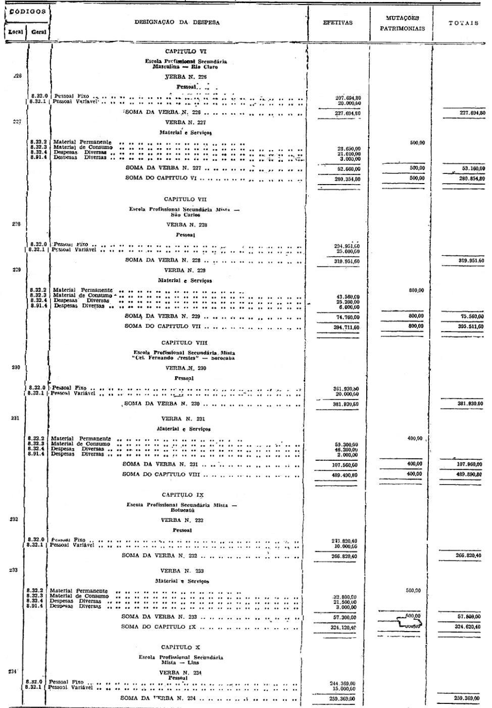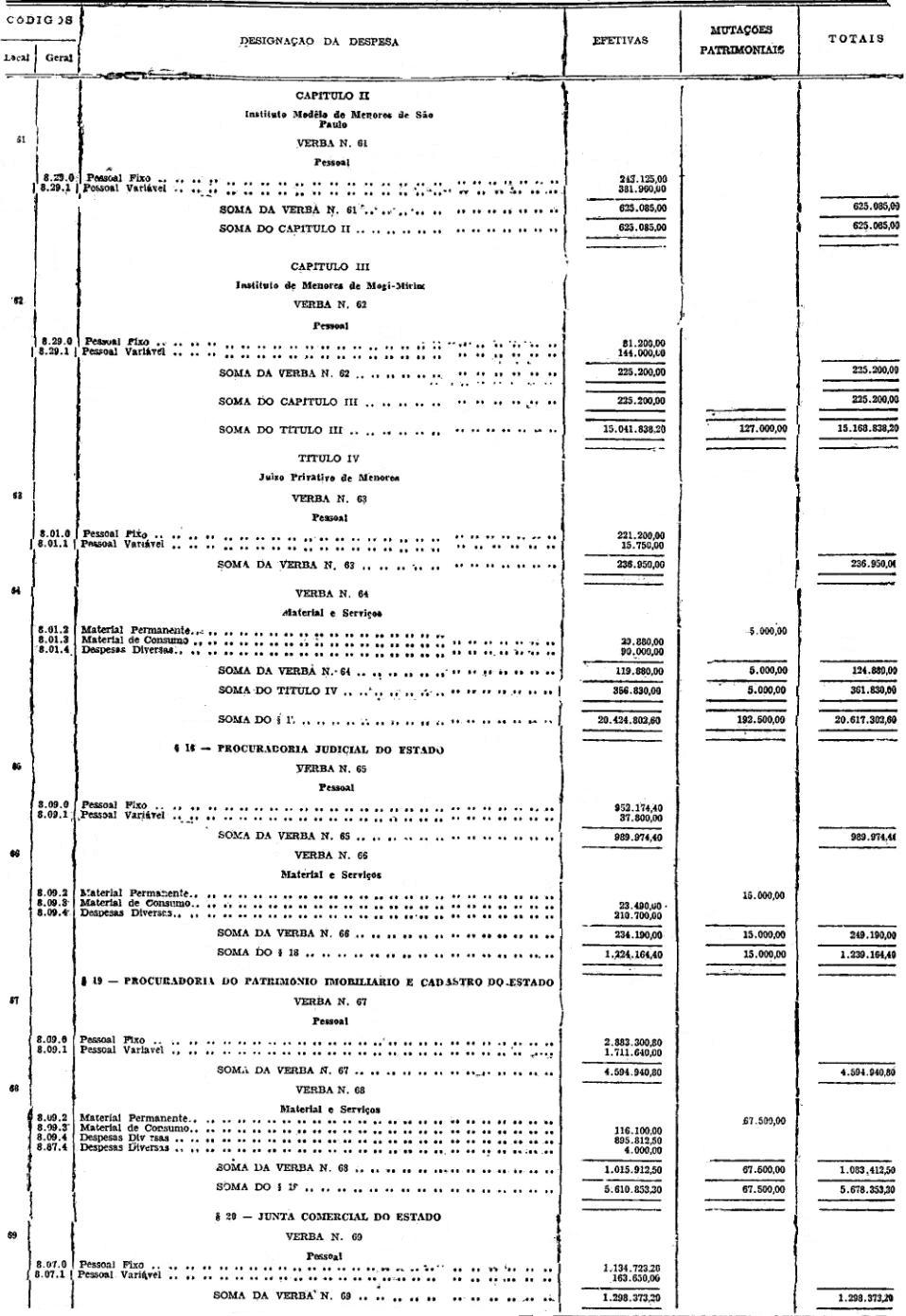 Soma da Verba n. 317, na coluna "totais", onde se lê Cr$ 2.230.000,00, leia-se Cr$ 3.230.000,00