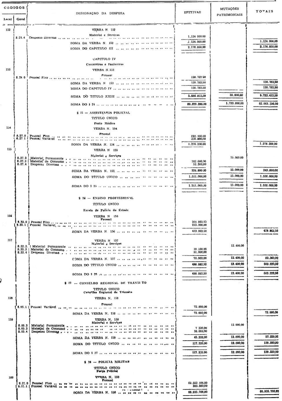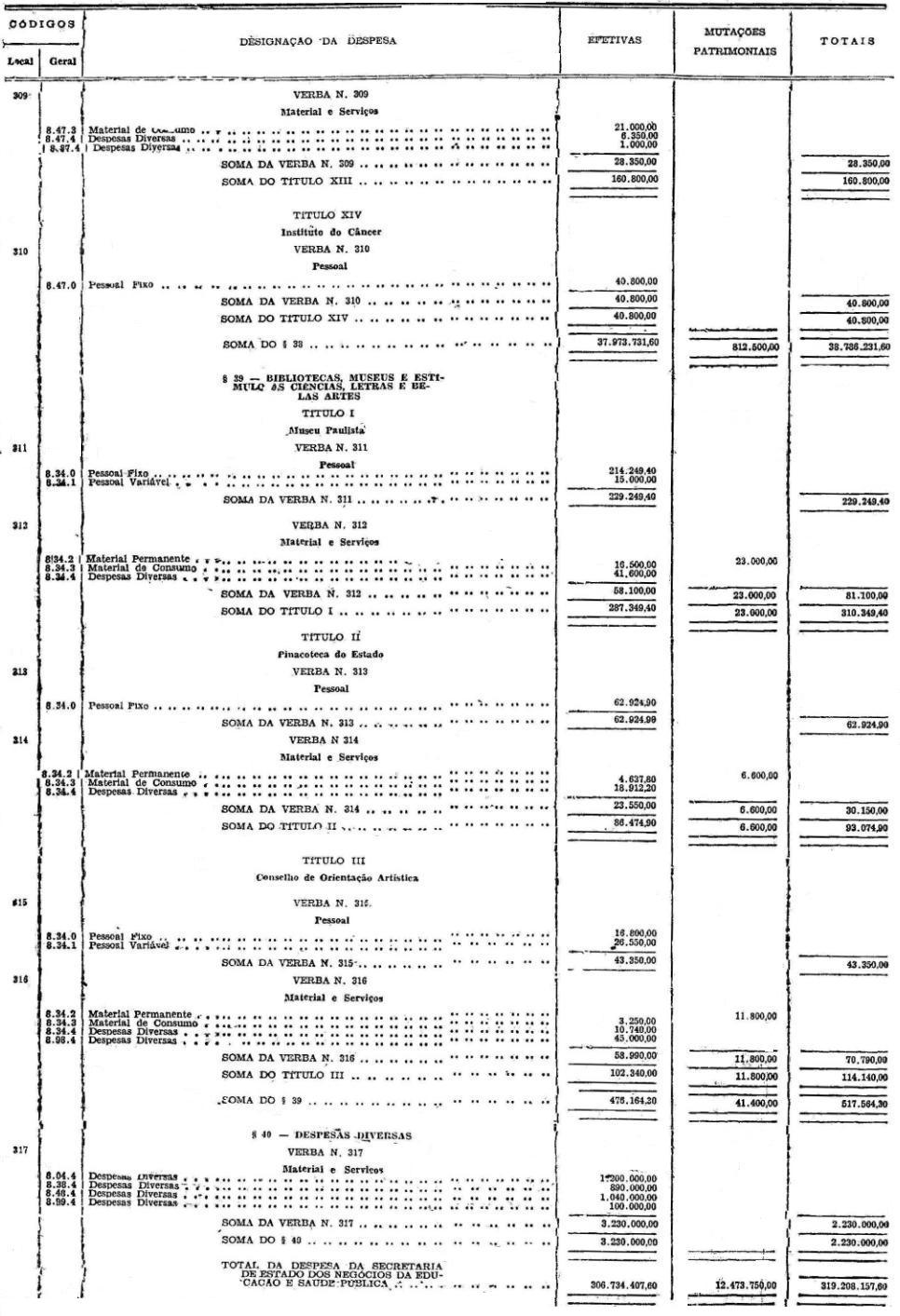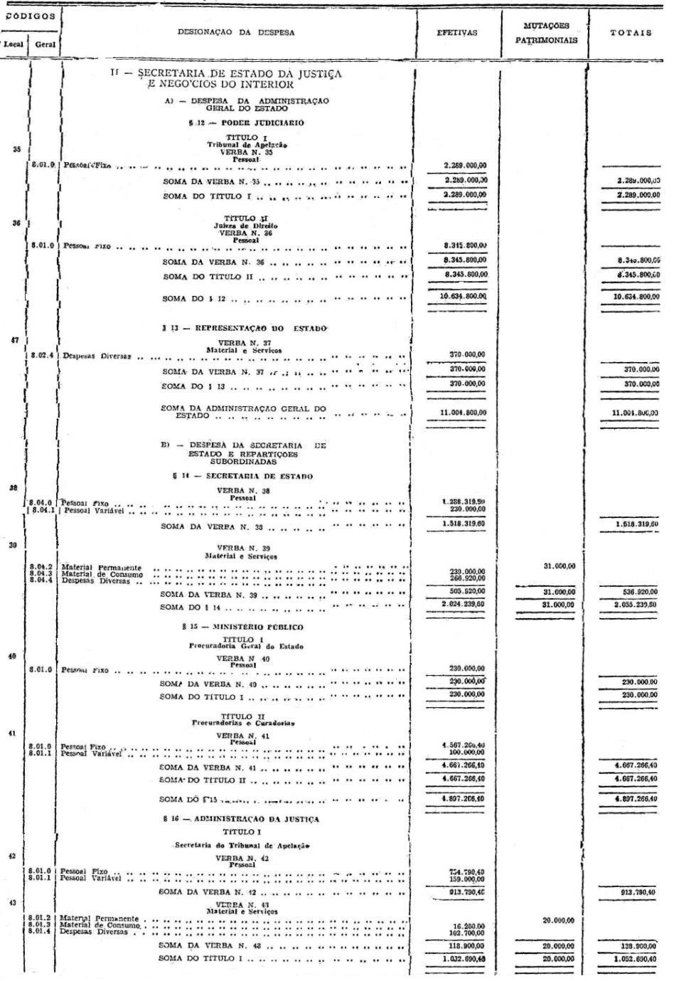 Soma da Verba n. 317, na coluna "totais", onde se lê Cr$ 2.230.000,00, leia-se Cr$ 3.230.000,00