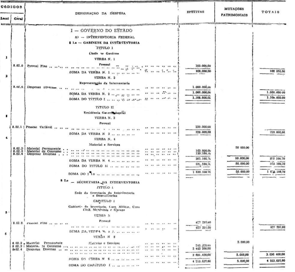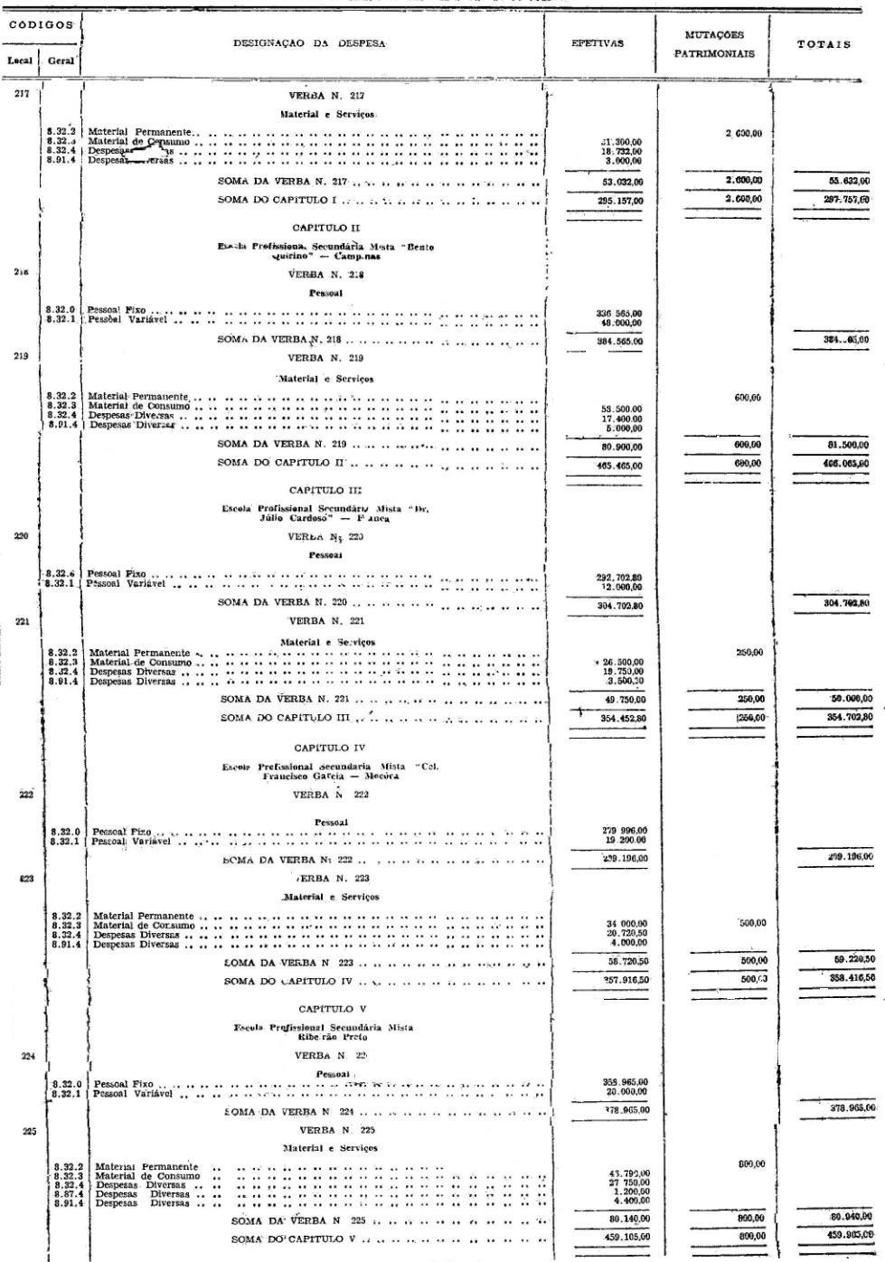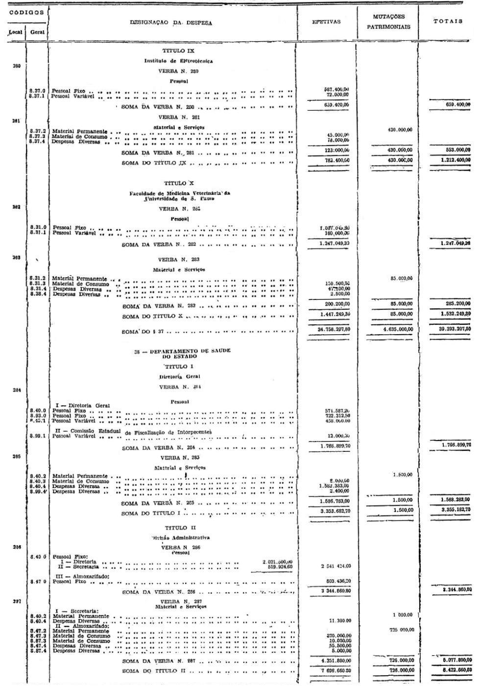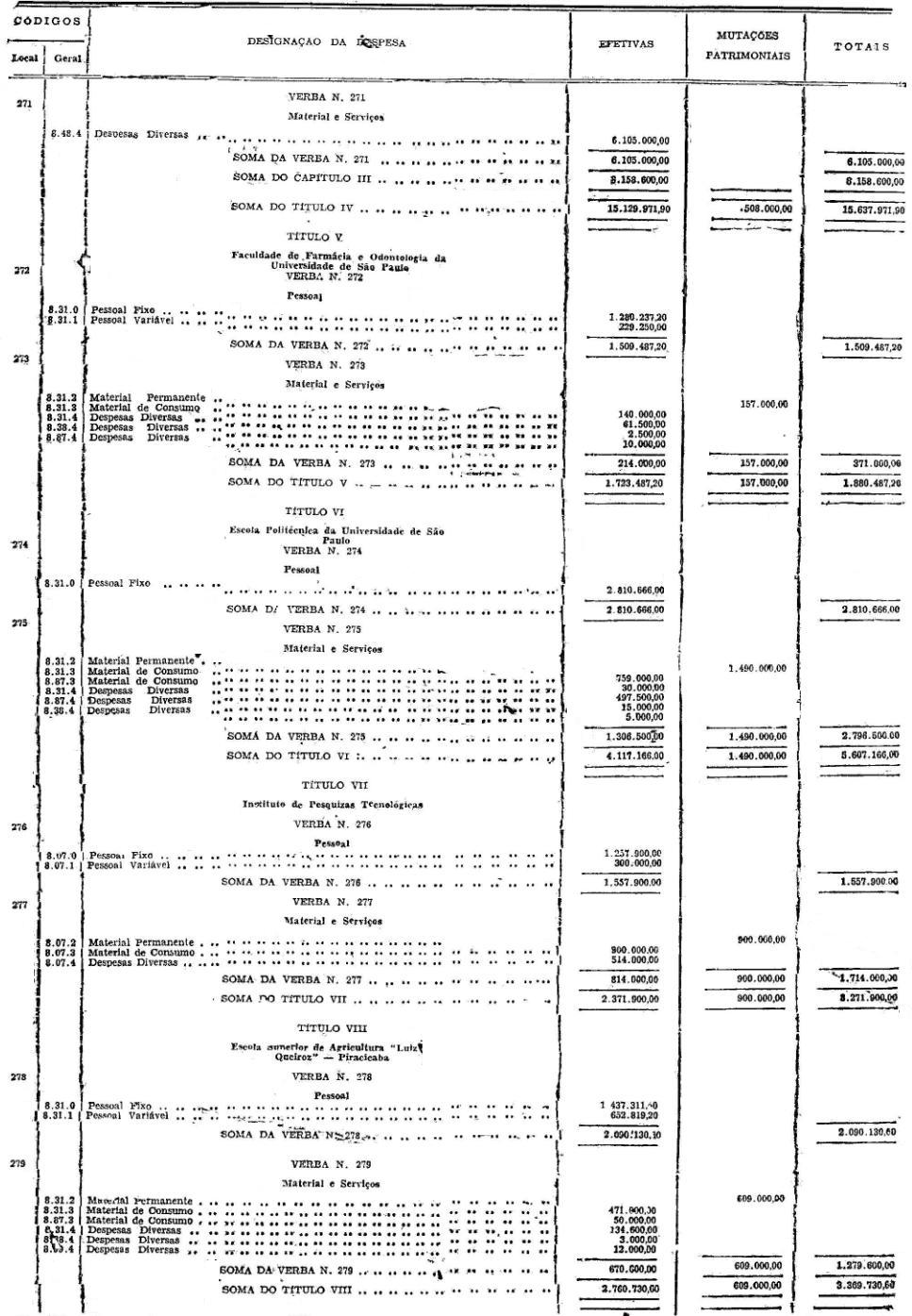 Soma da Verba n. 317, na coluna "totais", onde se lê Cr$ 2.230.000,00, leia-se Cr$ 3.230.000,00