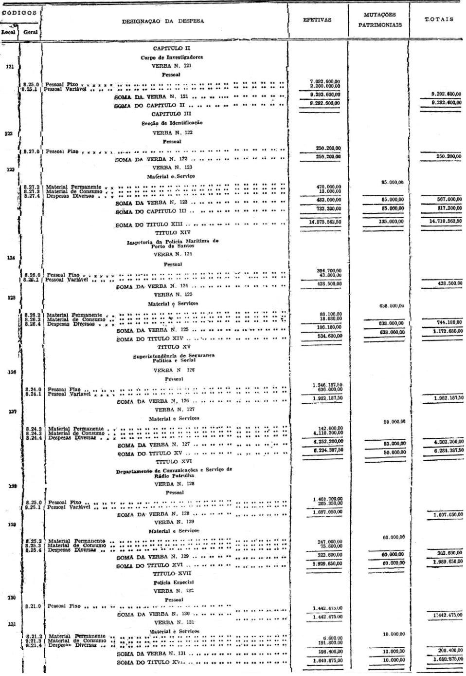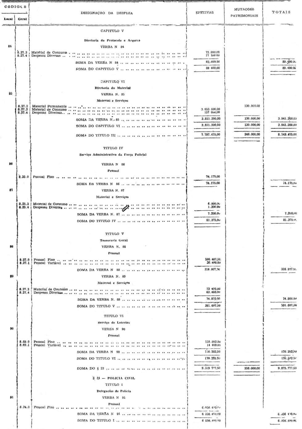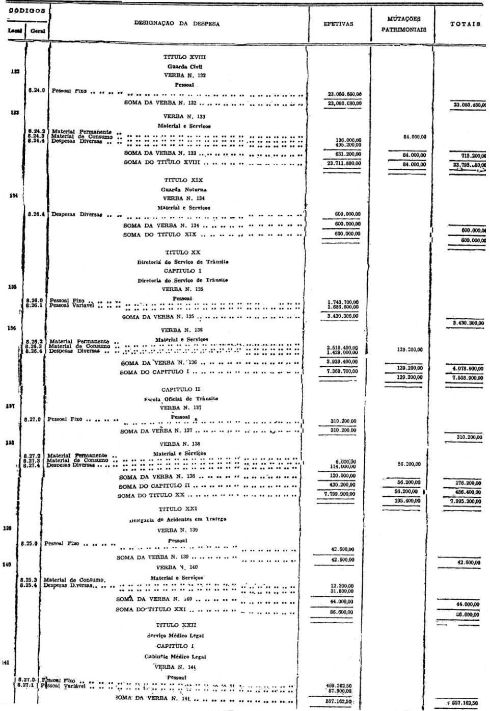 No título X (após a verba 111), leia-se "Delegacias de Polícia de Primeira a sexta Classe".