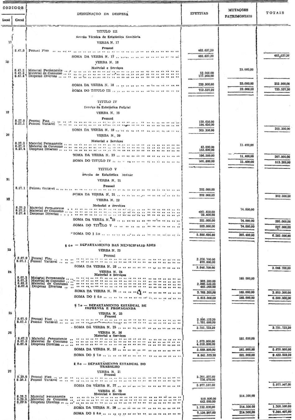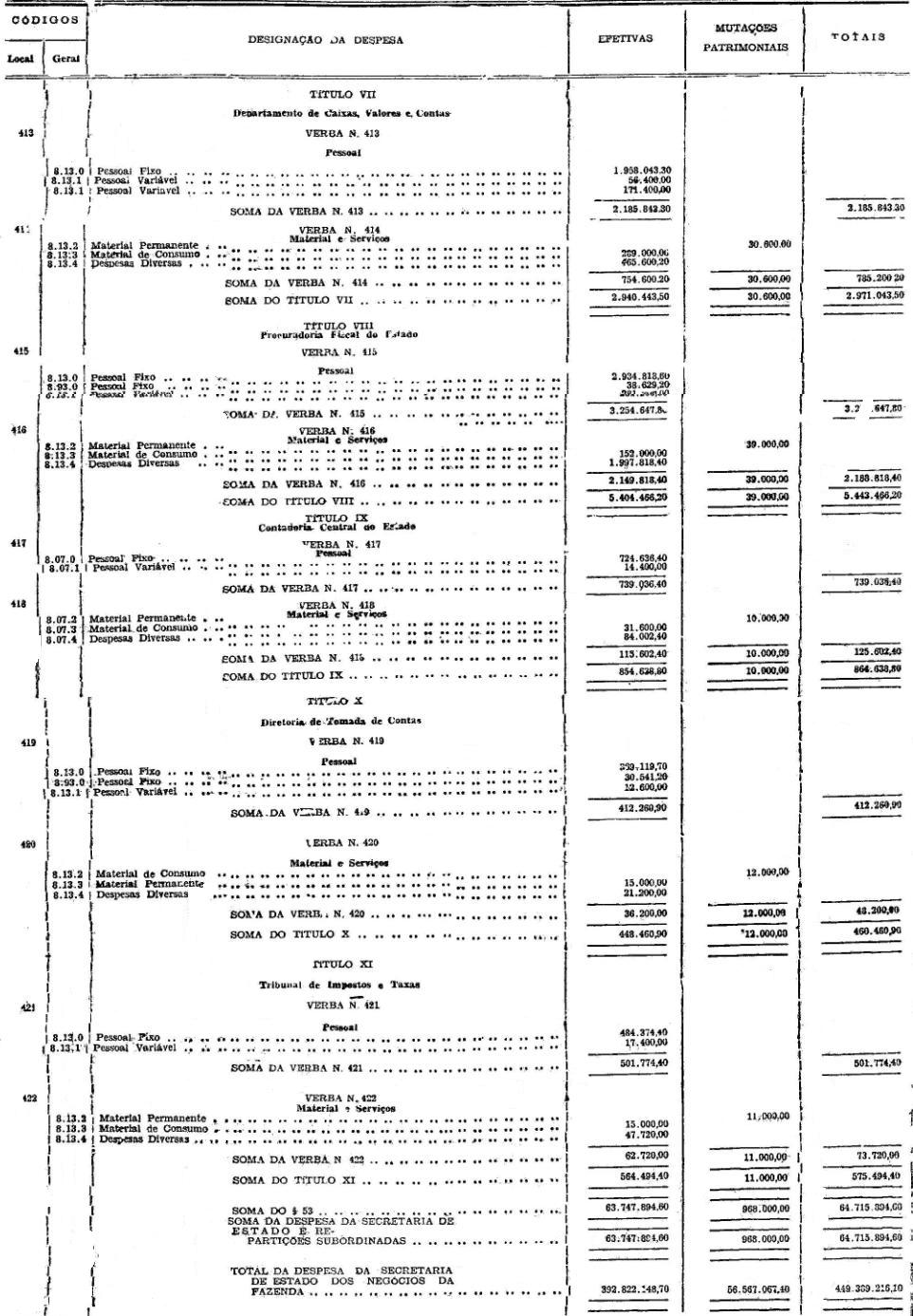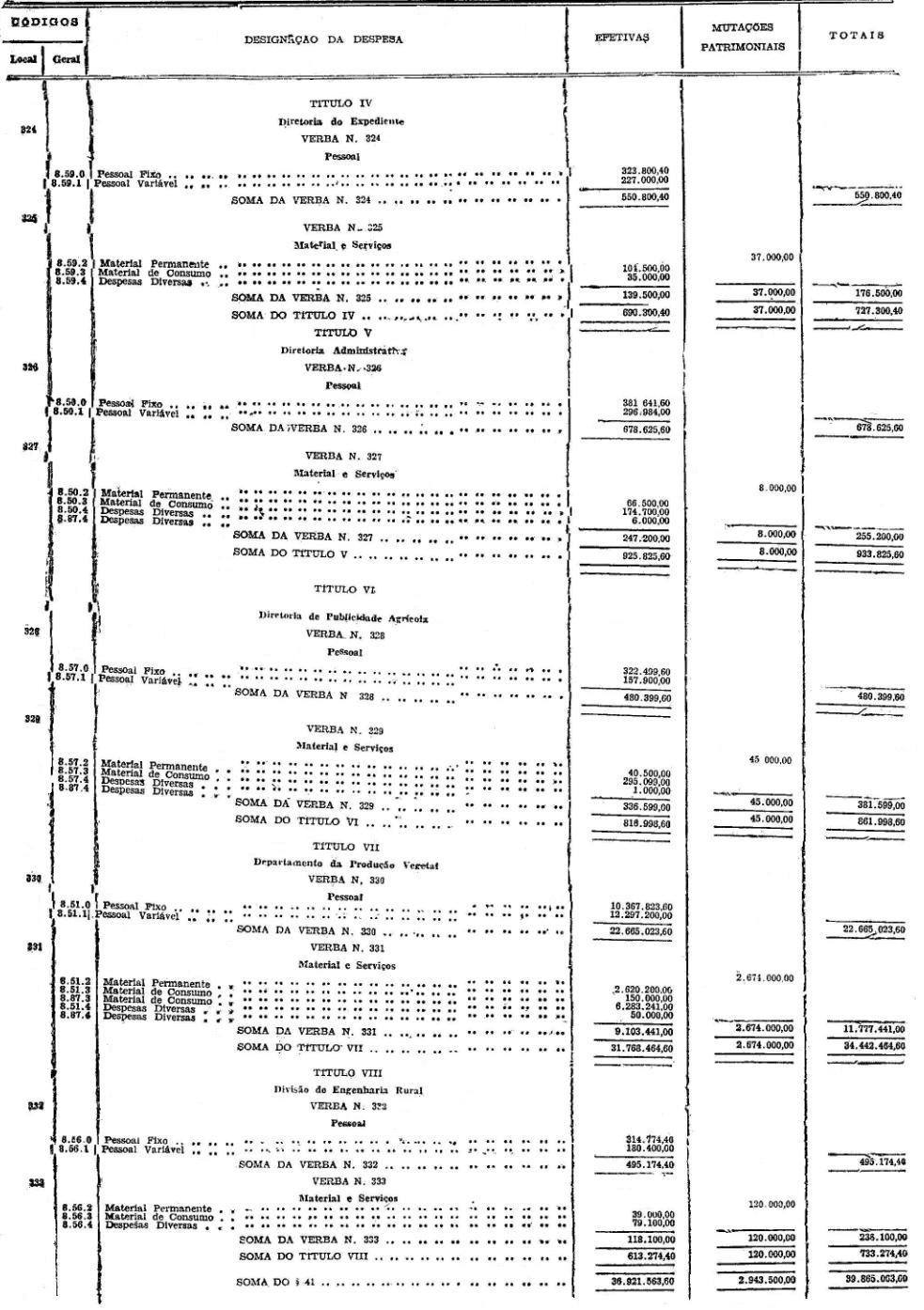na linha "totais" onde se lê Cr$ 32.986.970,00, leia-se Cr$ 32.989.970,00.