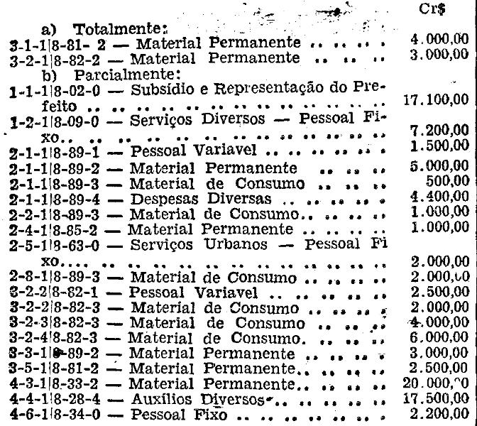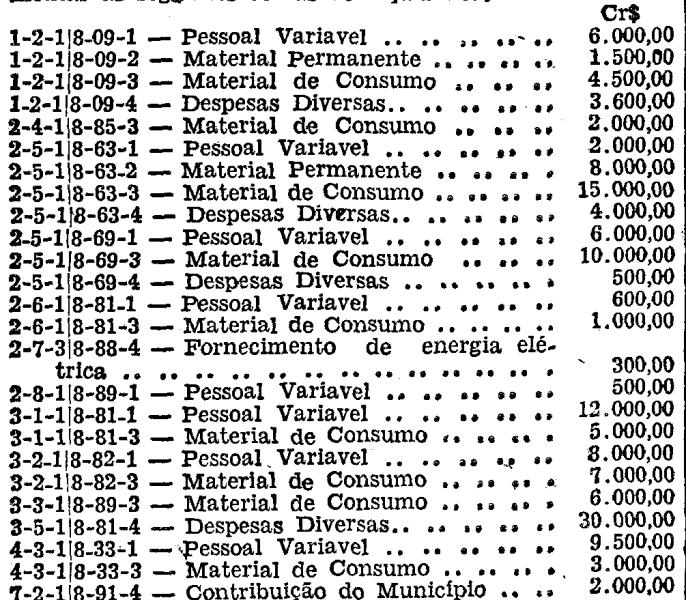 e oito mil cruzeiros), suplementar às seguintes verbas do orçamento: