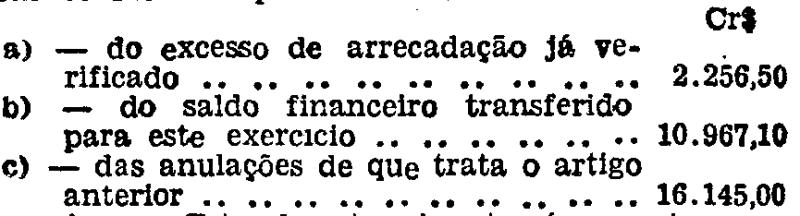 Artigo 3.º - O valor do presente crédito será coberto com os recursos provenientes:
