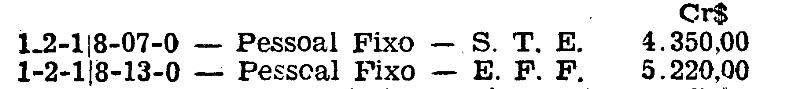 e setenta cruzeiros) suplemetar as seguintes verbas do