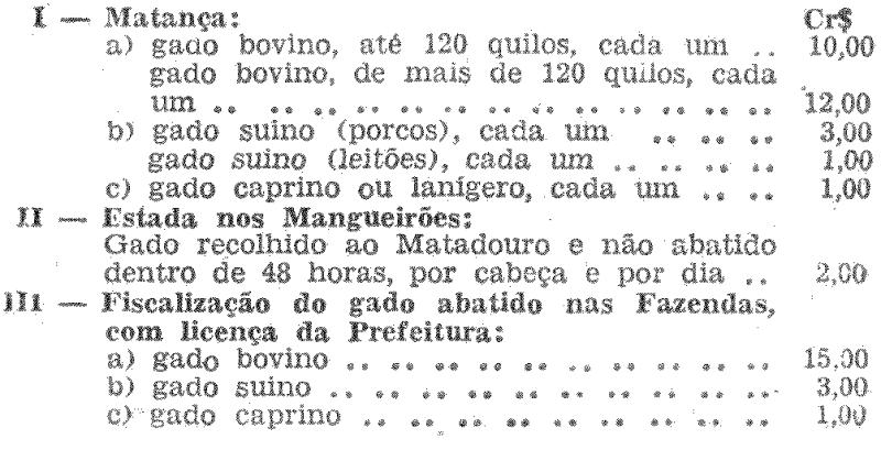 Artigo 10 - Pelo serviço de matança de gado são cobradas as taxas constantes da tabela anexa.
