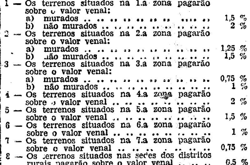 Artigo 7.º - Quando se tratar de chácaras situadas fora da 1.ª e 2.ª zonas, o imposto será reduzido de: