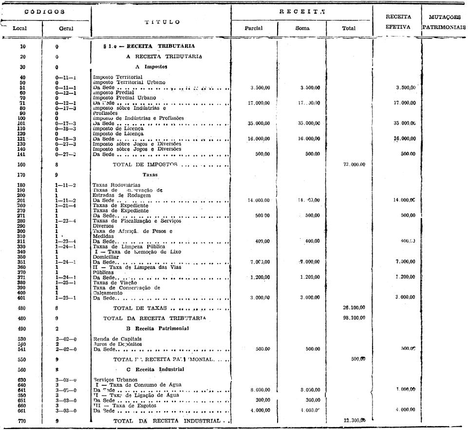 Artigo 1.º - A Receita Geral do Municipio de ÁGUAS DA