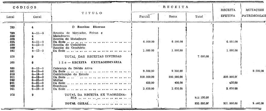 PRATA, para o exercicio de 1945, é orçada em Cr$ 930.000,00 (novecentos e trinta mil cruzeiros), e será de