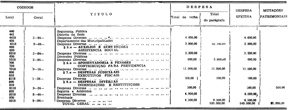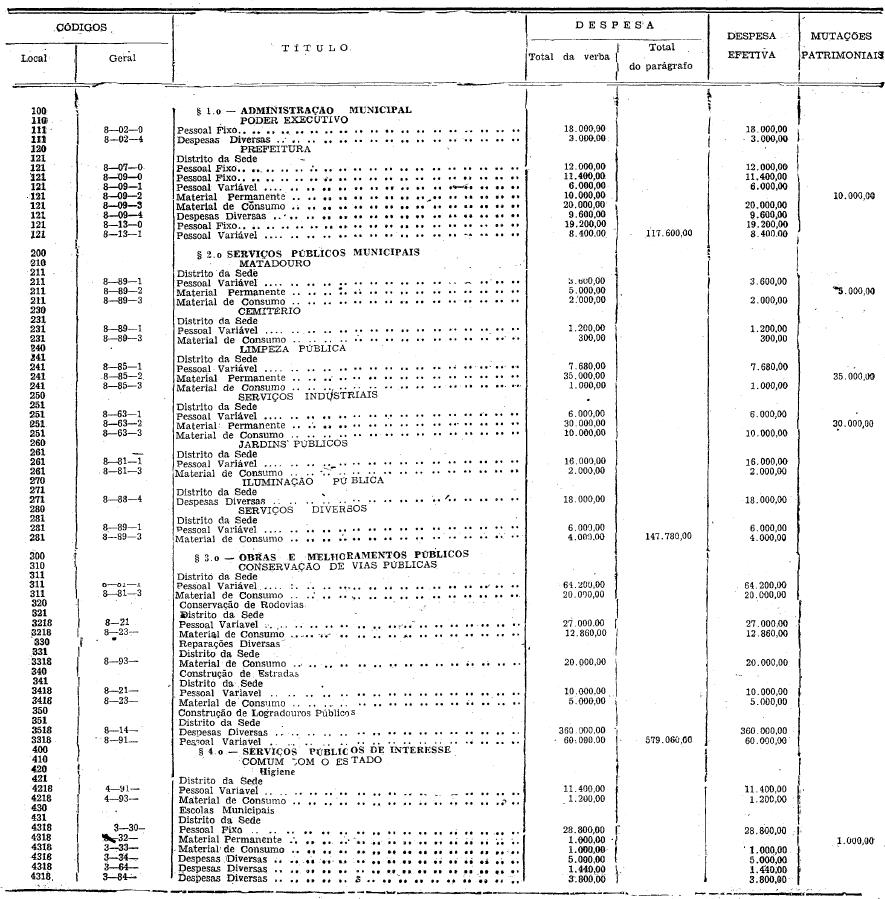 Art. 2.º - A Despesa Geral do Municipio de ÁGUAS DA PRATA, para o exercicio de 1945, é fixada em Cr$ 930.000.00 (novencentos e trinta) e será realizada obedecendo à seguinte classificação: