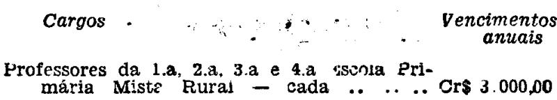 Artigo 2.º - O quadro de professores fica constituido de 4 (quatro) cargos com os vencimentos anuais constantes da tabela anexa.