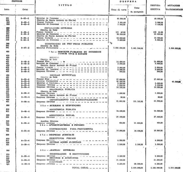 DO JORDÃO, para o exercicio de 1945, é orçada em
