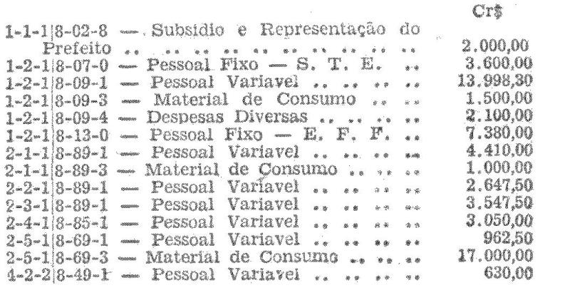 cruzeiros e oitenta centavos), suplementar às seguintes verbas do