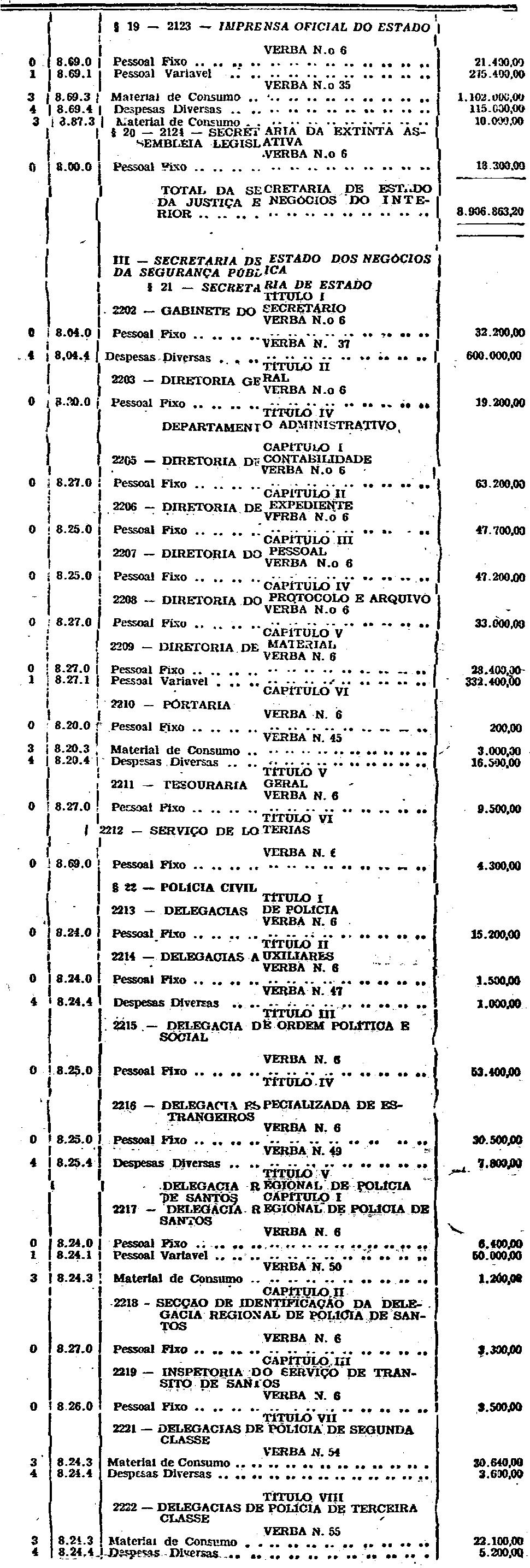 art. 2.º - .§ 22 - Polícia Civil - Verba 47 4-8.24.4 - Despesas Diversas - Onde