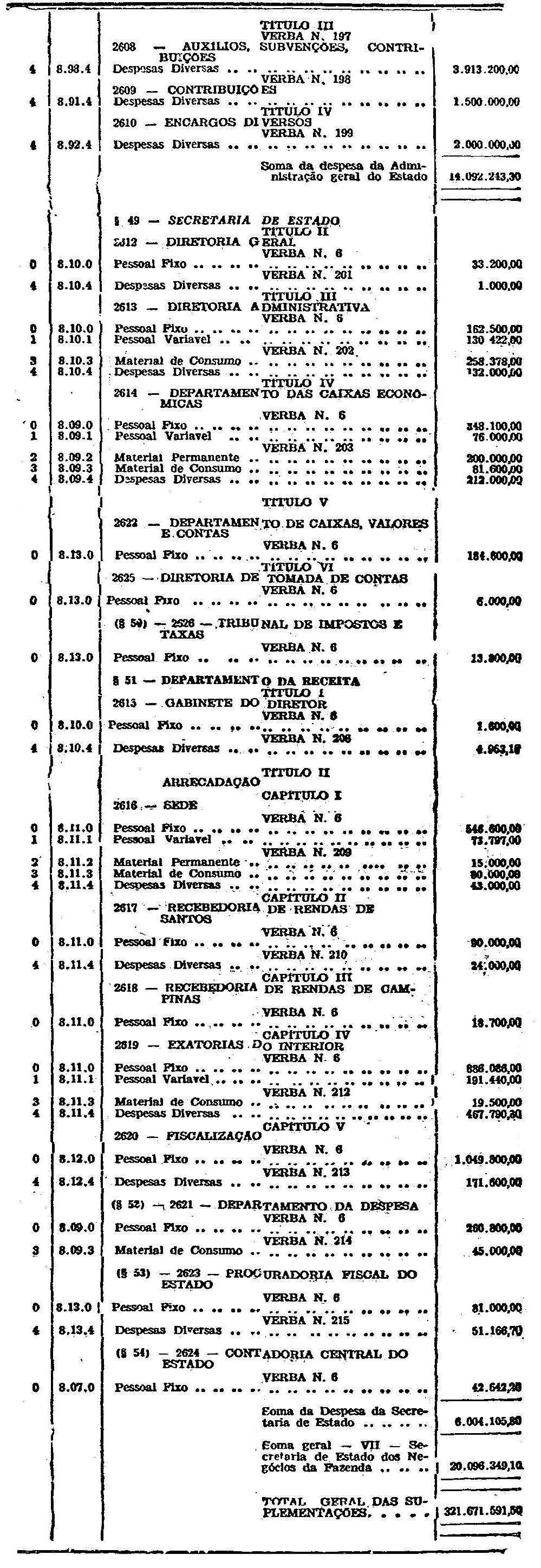 suplementadas dotações no orçamento vigente, na importância total de Cr$ 321.671.591,50