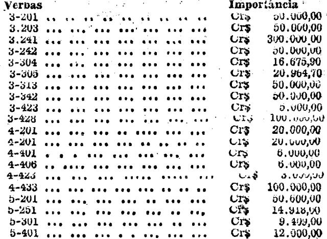 No art. 2.º, coluna de verbas, suprima-se uma vez a coluna 4-201..................... Cr$ 20.000,00.