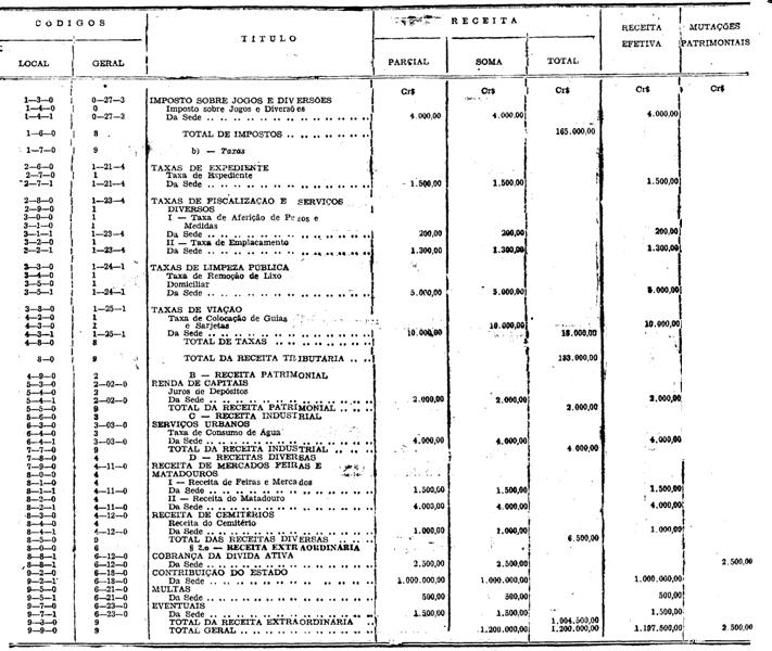 Artigo 1.º - A Receita Geral da Prefeitura sanitária