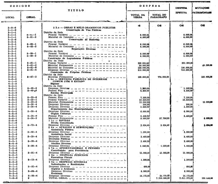 Artigo 2.º - A Despesa Geral da Prefeitura Sanitária de Lindoia, para o exercicio de 1946 é fixada em Cr$ 1.200.000,00 (um milhao e duzentos mil cruzeiros), e será realizada obedecendo a seguinte classificação: