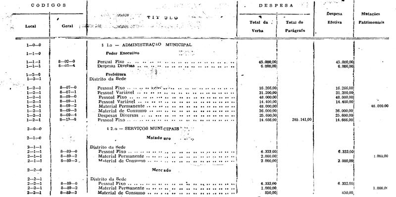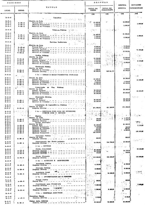 Artigo 2.º - A Despesa Geral da Prefeitura Sanitána de Serra Negra para o exercicio de 1946, é fixada em Cr$ 1.355 000,00 um milhão trezentos e cinquenta e cinco mil cruzeiros), e sera realizada obedecendo a seguinte classificação.