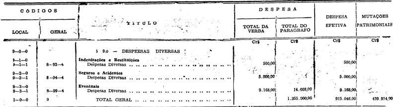8-1-18-13-4 - Despesas Diversas - Total da Verba - Cr$ 3.000,00 - Despesa Efetiva Cr$ 3.000,00.