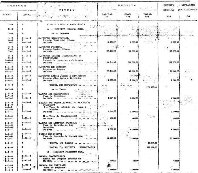 Artigo 1.º - A Receita Geral da Prefeitura Sanitária
