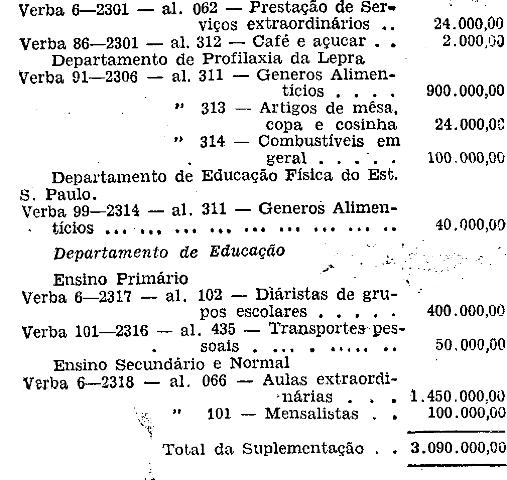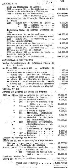 trinta e seis cruzeiros e vinte centavos) as dotações do