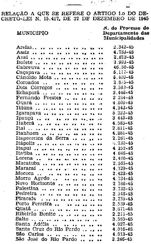 Publicação na Diretoria Geral da Secretaria da Interventoria, aos 27 de dezembro de 1945.