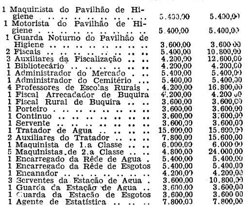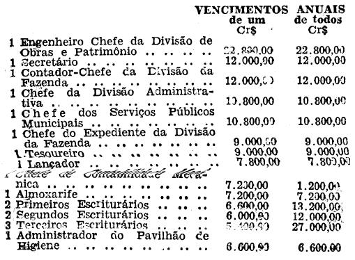 vencimentos anuais dos cargos do quadro da Prefeitura Sanitária