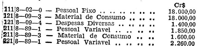 seis mil, duzentos e trinta cruzeiros), às seguintes verbas do