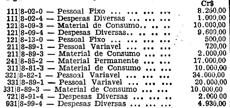 trinta mil cruzeiros), suplementar às seguintes verbas do