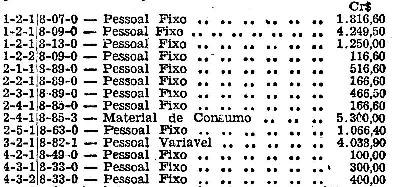 um crédito de Cr$ 19.954,30, suplementar a diversas verbas do