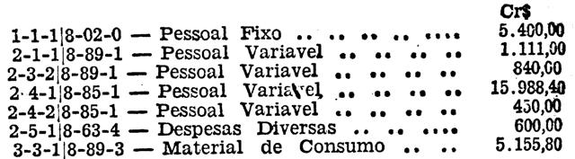 - Fica aberto, na Contadoria Municipal, um crédito de Cr$