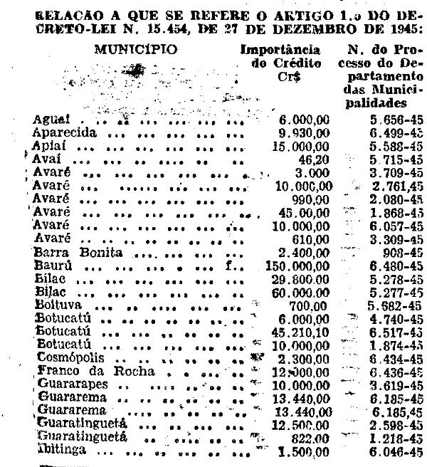 Publicado na Diretoria Geral da Secretaria do Interventoria, aos 27 de dezembro de 1945