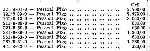 setecentos e sessenta cruzeiros), suplementar as seguintes verbas do