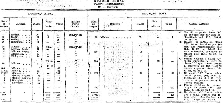carreira do mesmo nome, da Tabela III, da Parte Permanente, do Quadro