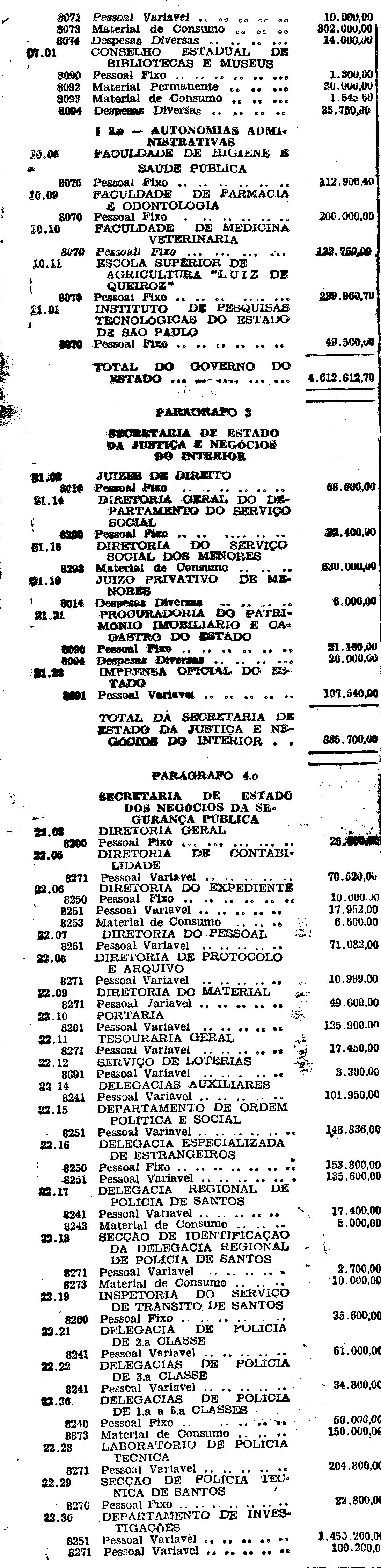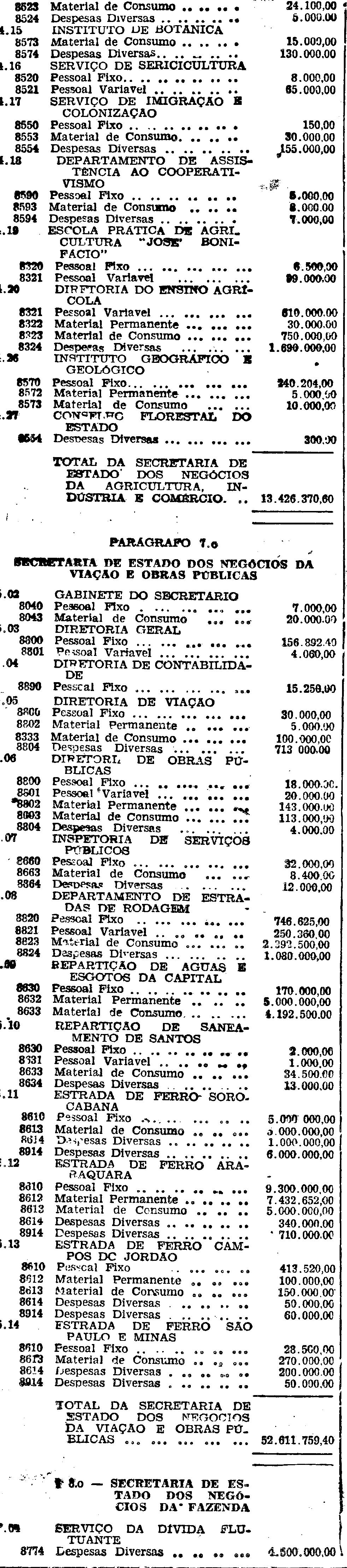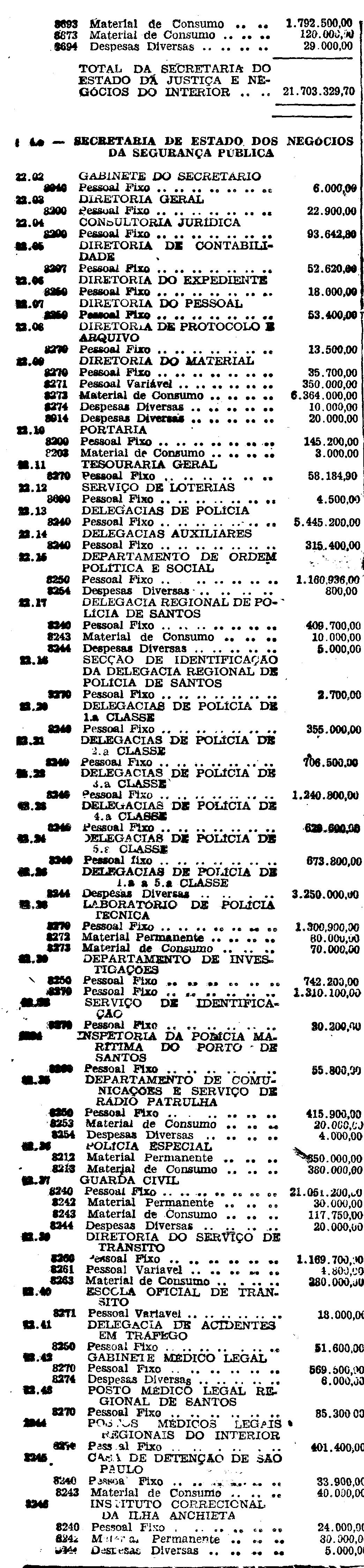 Artigo 2.º - Ficam suplementadas dotações no orçamento vigênte, na importância total de Cr$ 439.431.481,70 (quatrocentos e trinta e nove milhões, quatrocentos e trinta e um mil, quatrocentos e oitenta e um cruzeiros e setenta centavos), como abaixo se discrimina.