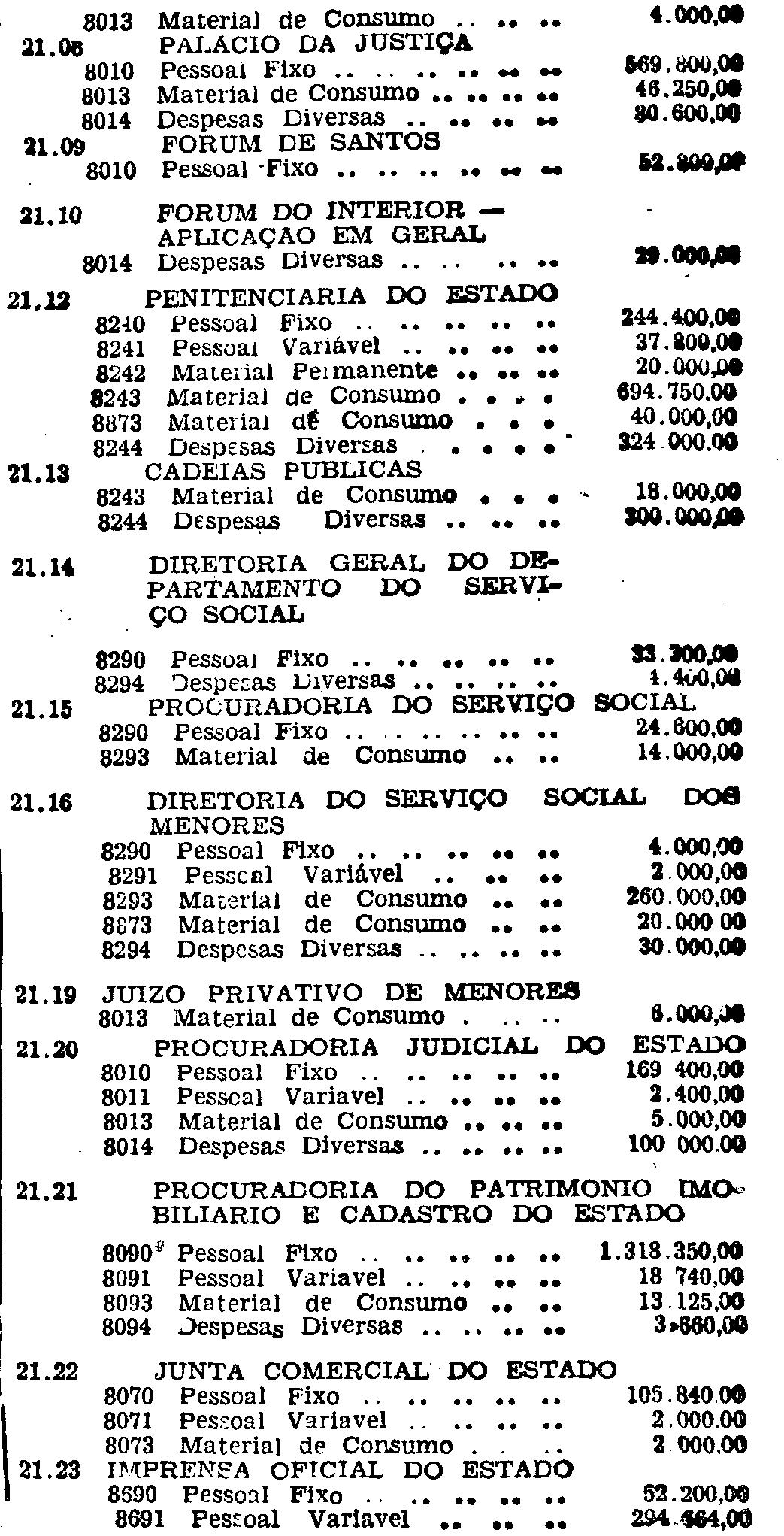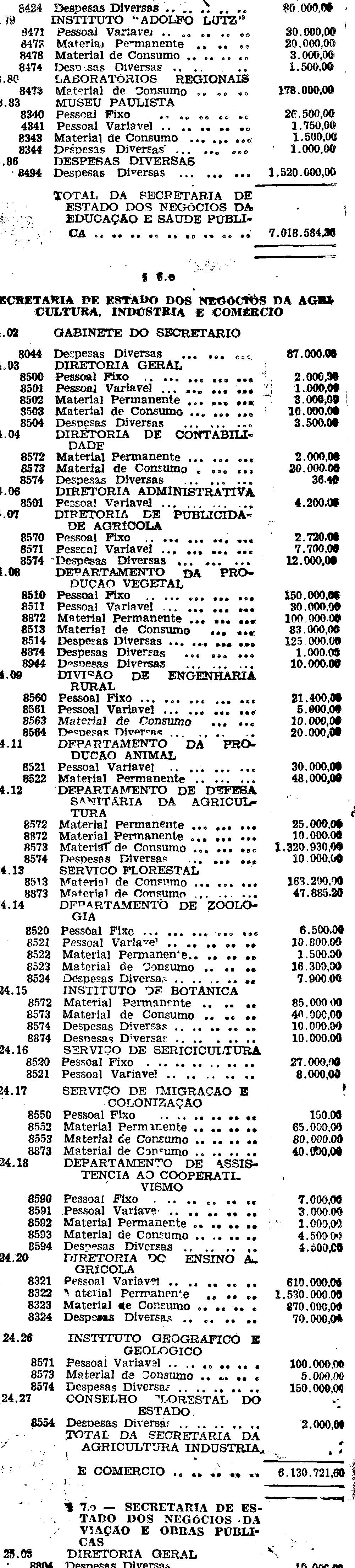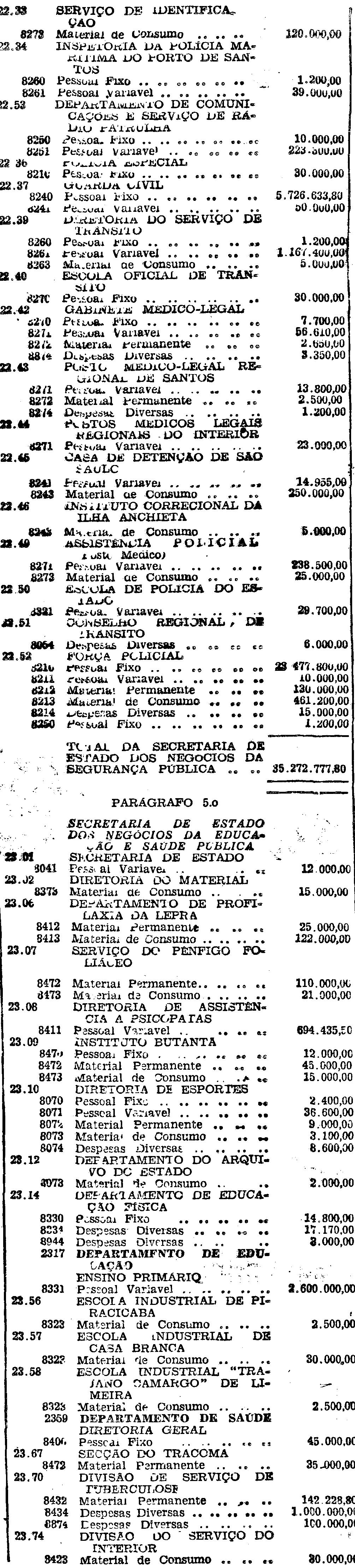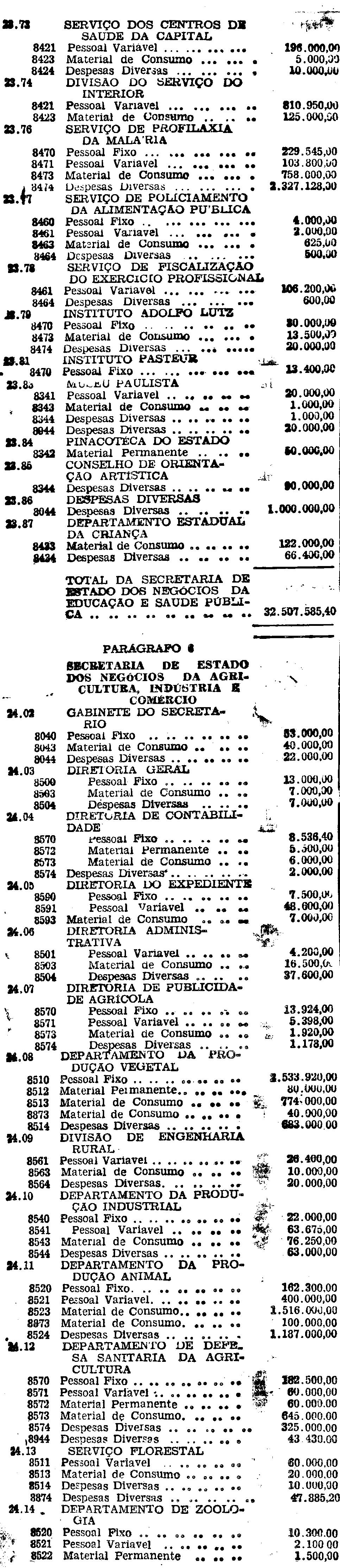 Artigo 2.º - Ficam suplementadas dotações no orçamento vigênte, na importância total de Cr$ 439.431.481,70 (quatrocentos e trinta e nove milhões, quatrocentos e trinta e um mil, quatrocentos e oitenta e um cruzeiros e setenta centavos), como abaixo se discrimina.