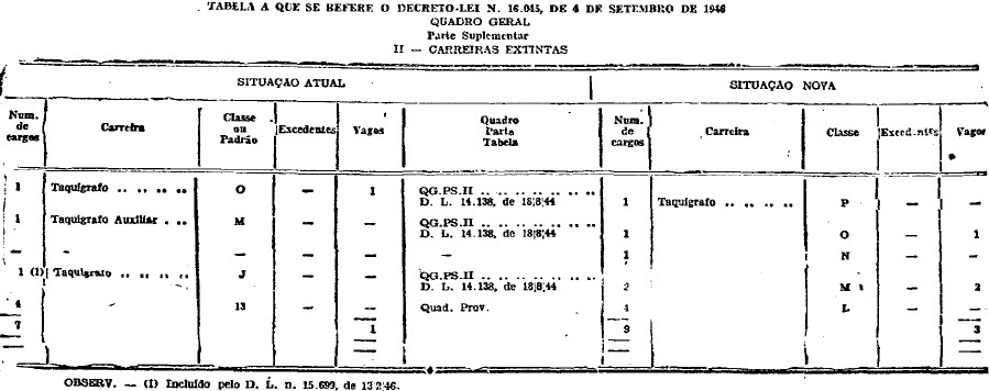 Artigo 1.º - A carreira de Taquígrafo da Tabela II, da Parte Suplementar